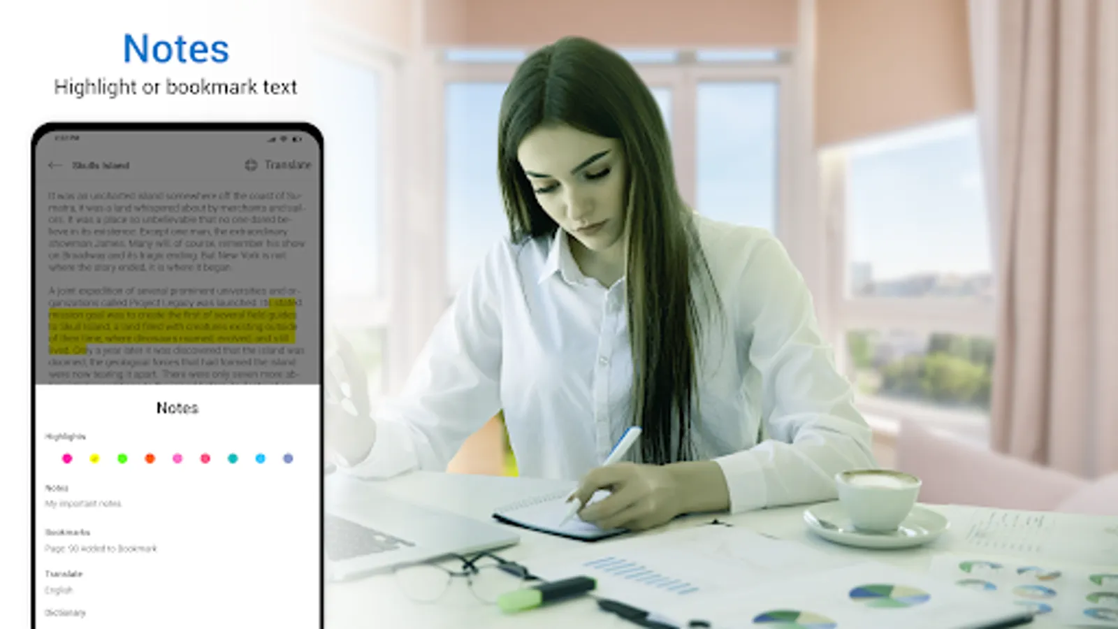 Ebook reader: ePub & audiobook reader app provides the genres store with the different book topic segments like fantasy, travel, children, history, novel, comedy and horror books library for reading. You can set a reminder and highlights your important or favourite text.
