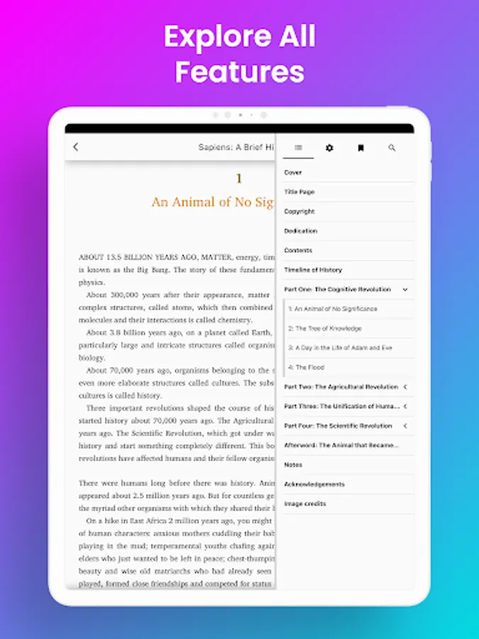 This app aims to enable users to consume books in any manner: text, speech, speedreading, summary, etc.