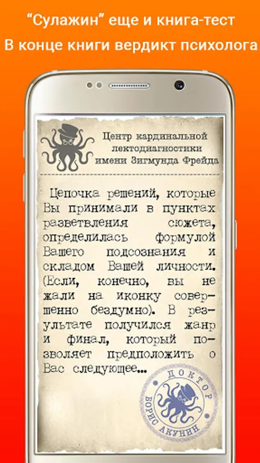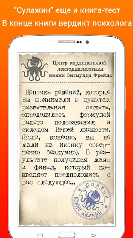 "I am writing this book, the octopus was fun and interesting. It's a story that responds to the inner voice of the reader. It can get very different, depending on your choice. Sweet, bitter, sour, salty, terrible, "- said Boris Akunin -" And in the end you get the opinion of the psychologist, and finally find out what kind of person. "