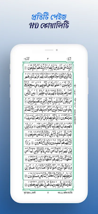 এই অ্যাপটিতে Quran পৃষ্ঠা গুলো খুবই ক্লিয়ার ভাবে দেওয়া হয়েছে তাই বই পড়তে কোনো অসুবিধা হবে না।