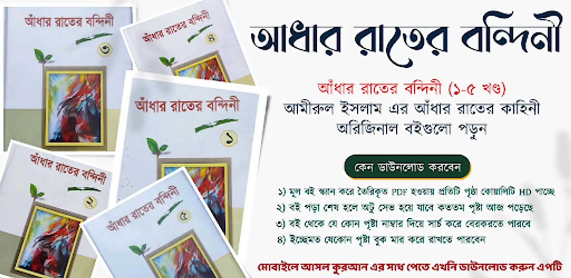 আঁধার রাতের বন্দিনী pdf এপটি খুবি সহজ ও সুন্দর ভাবে সাজিয়ে বানানো হয়েছে। আঁধার রাতের বন্দিনী pdf অ্যাপটি অফলাইন ও অনলাইন উভয় ভাবেই পড়তে পারবেন।