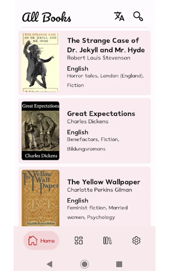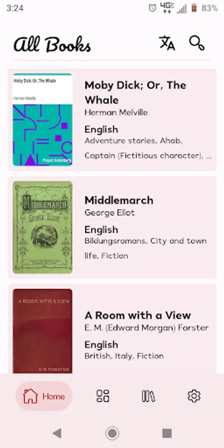 IJEbook is an open-source android application which lets you download and read over 69,000+ free e-books from The Project Gutenberg's library.