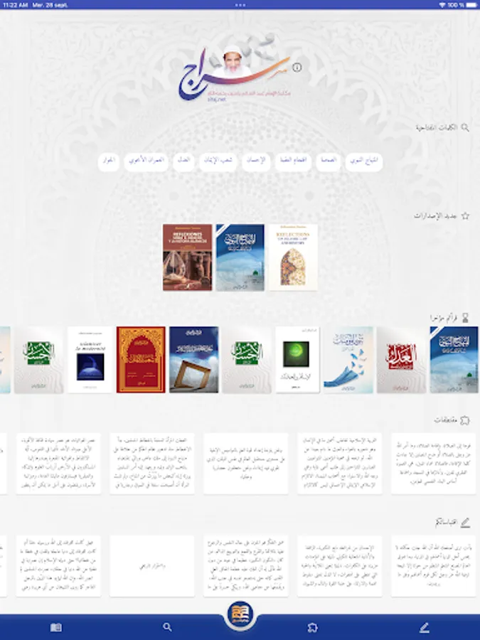 Siraj is an encyclopedia that includes books, collections, letters, articles and manuscripts of the revamped Imam Abdul Salam Yassin, may God have mercy on him, and the works translated from them into multiple languages, including English, Spanish, Turkish, French, German, Italian and Russian. In a special offer that facilitates searching, browsing and copying.