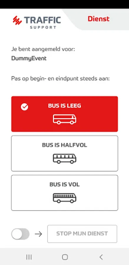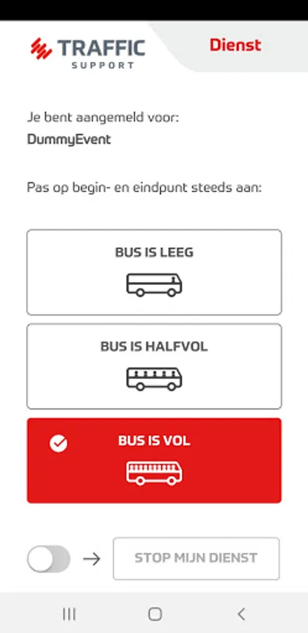 Traffic Support wants to be able to follow bus transport during the events. The buses are used to transport visitors between public transport stations, parking lots and the event.