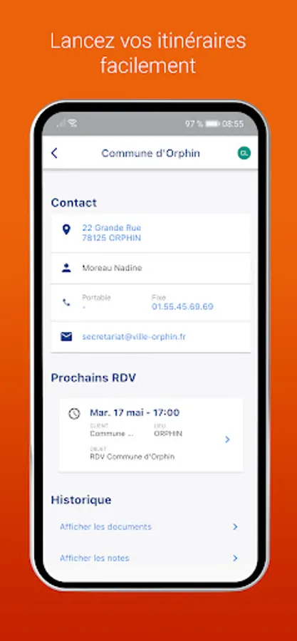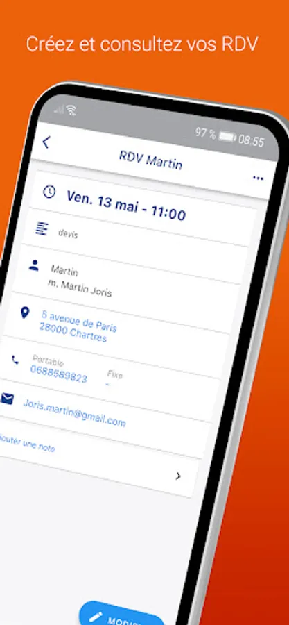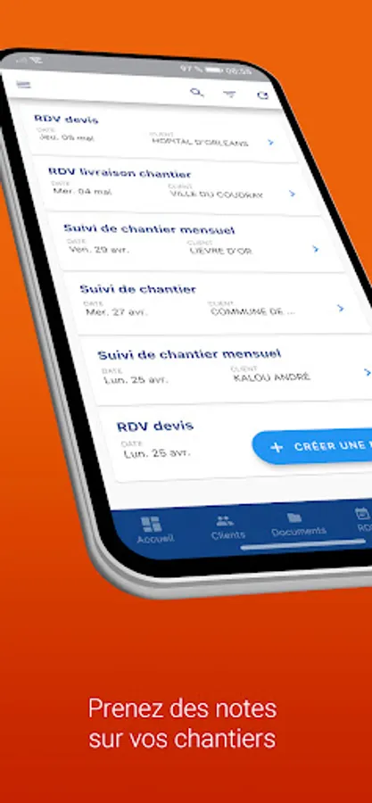 Create your appointments in the application and find them automatically in the software. You can easily follow your schedules, launch your itineraries in one click and then find all the information perfectly integrated into the software to make your quote!