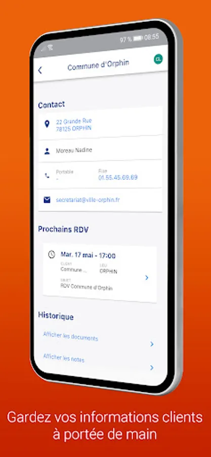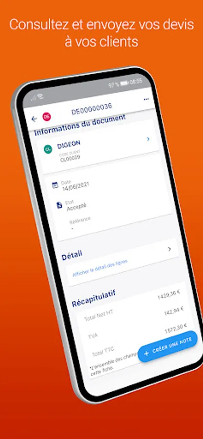 Need information on a customer, a quote, an invoice? Consult all your data directly in your mobile.