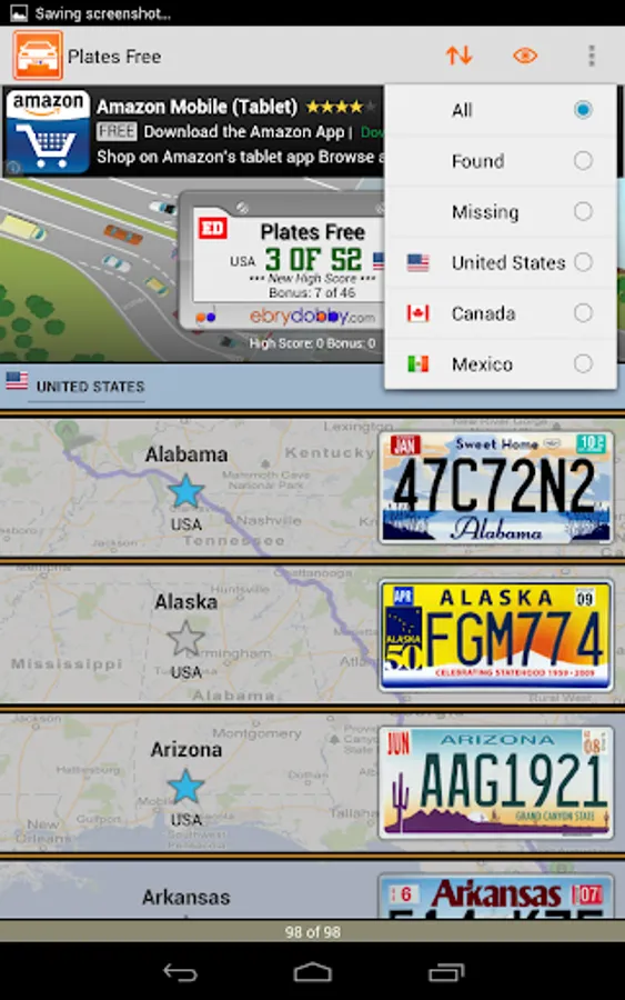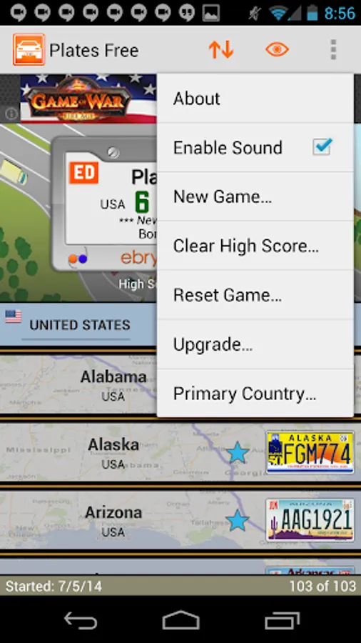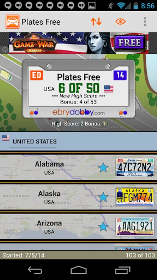 • 57 U.S. license plates: one for each of the U.S. 50 states, one for Washington D.C., one for the U.S. Government, and five for the U.S. territories. Eleven more in the paid version.