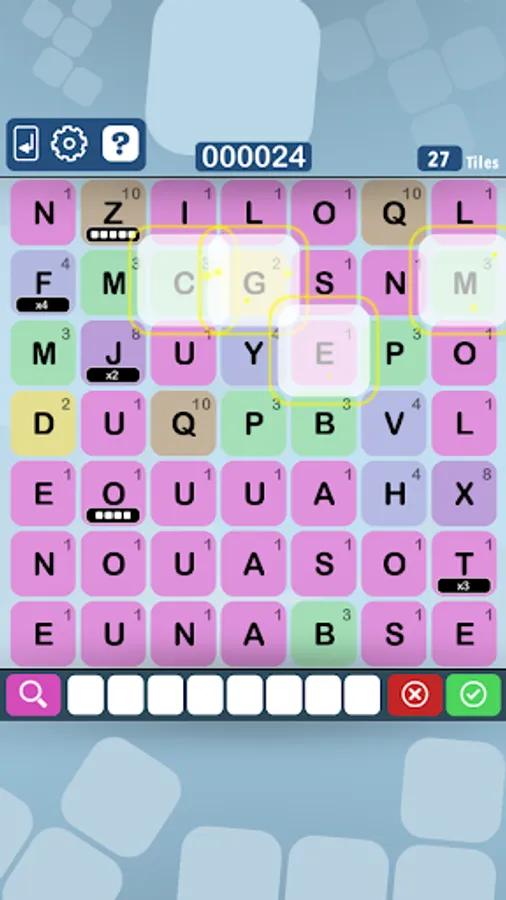 You have got a limited amount of letter tiles, so look out for the bonuses which will give you more letter tiles. Also look out for the word score multipliers to boost your score.