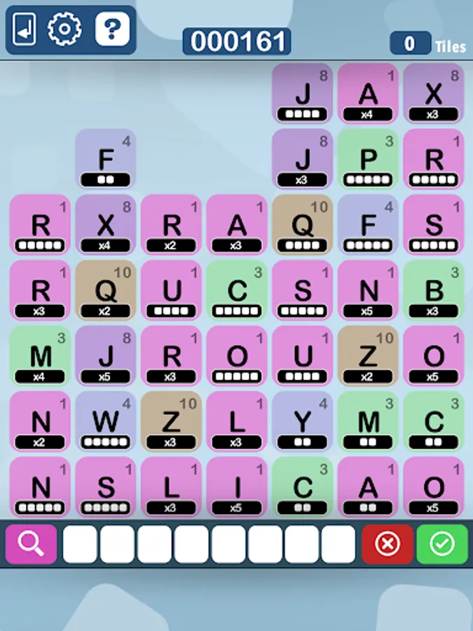 - Click on the green tick ( if the word is in the apps's dictionary it will give you points and remove the tiles )