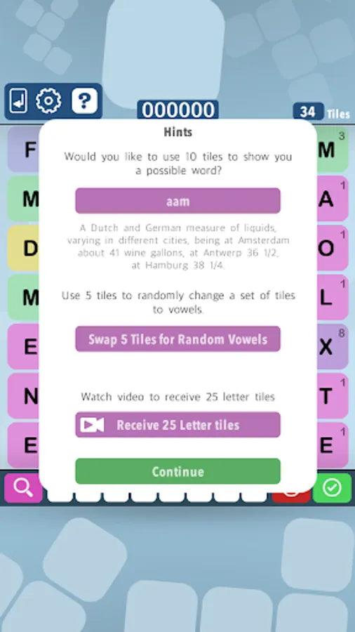 If you get stuck you can always ask for a 'Hint' this can either give you a word or maybe swap letters out for vowels. If you ask for a word it will also give you the definition so you can learn as you play.