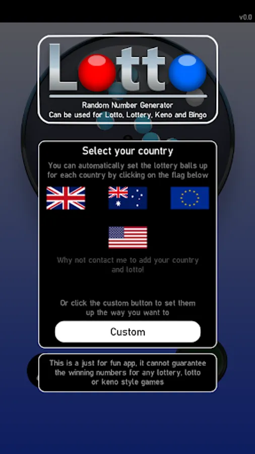 Lotto - Random Number Generator, can be used for generating numbers for various lottos around the world. You can also use for Keno, Lottery, Tombola and Bingo, basically anything you need a set of random numbers for.