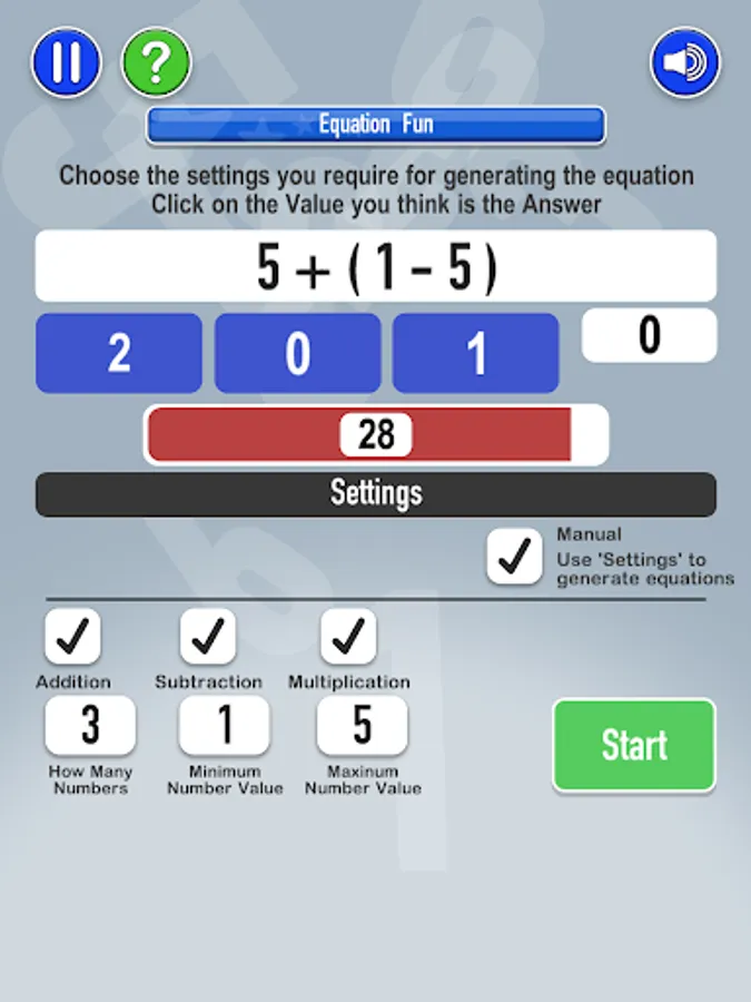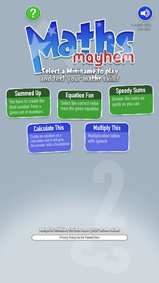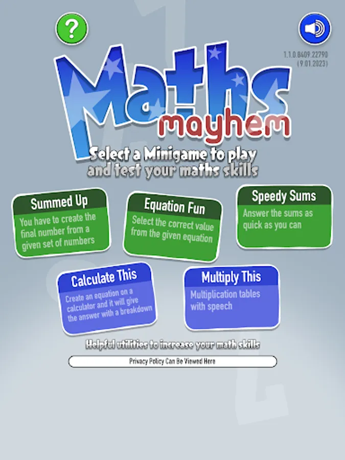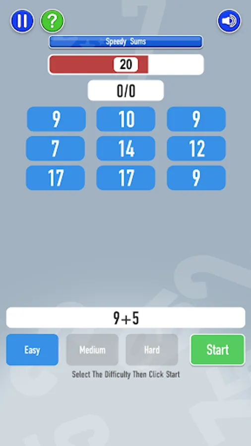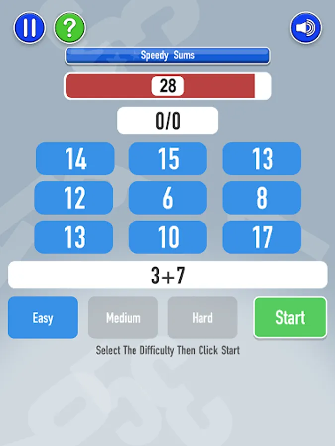 ‘Speedy Sums’ is similar to ‘Equation Fun’ but there is a grid of numbers to choose from. It will store the amount of correct answers you get per game so you can try and beat yourself each time. You can choose from ‘Easy’, ‘Medium’ or ‘Hard’ difficulty.