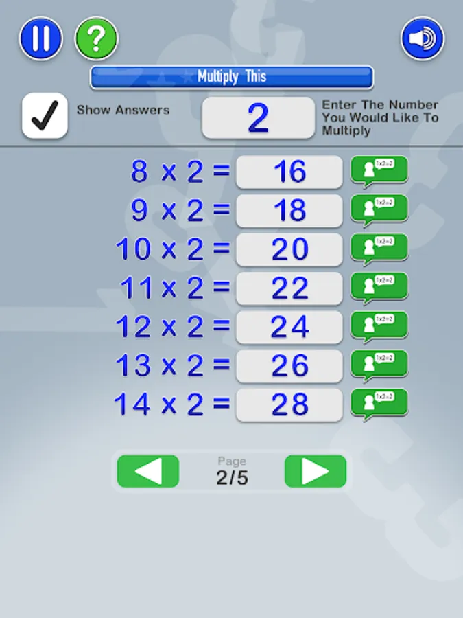 This mini-game will show you a given times table over multiple pages. You can either choose for the application to speak the answer or you can choose to enter the answer yourself and it will tell you if it’s right or wrong. You can also change the times table you want to view.