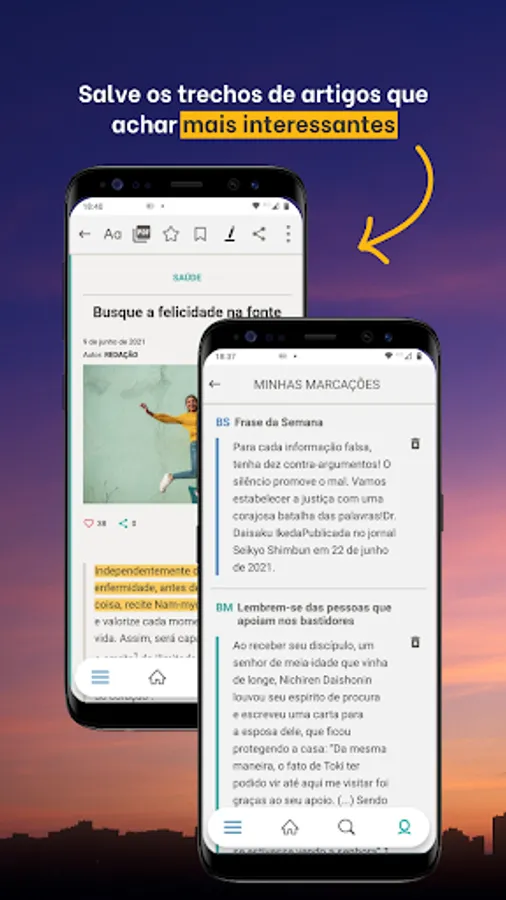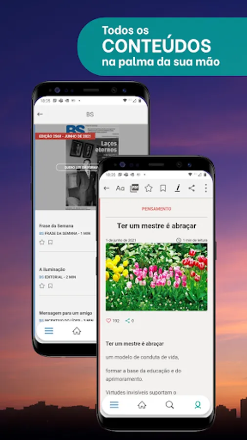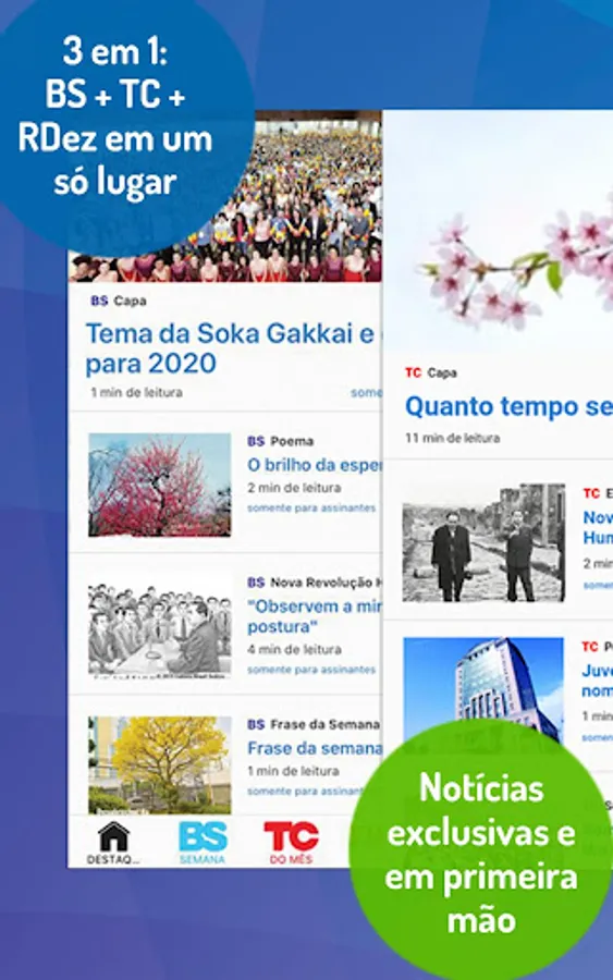 For 55 years, Publishing Brasil Seikyo (EBS) has shared the teachings of Buddhism by Nichiren Daishonin and the humanistic ideals of Dr. Daisaku Ikeda in the Brasil Seikyo newspaper, Third Civilization magazine and RDez. Now this content is gathered in one place: bs +, the EBS application. In it, you can also access unique texts separated by themes - family, health, work and others - and bookmark them for later reading.