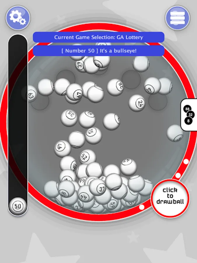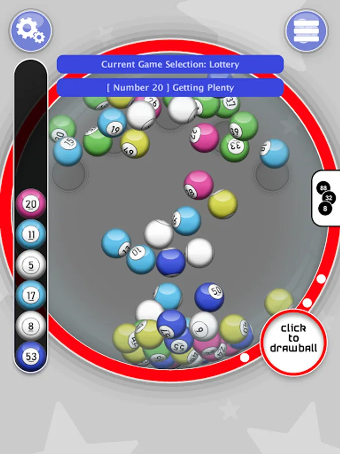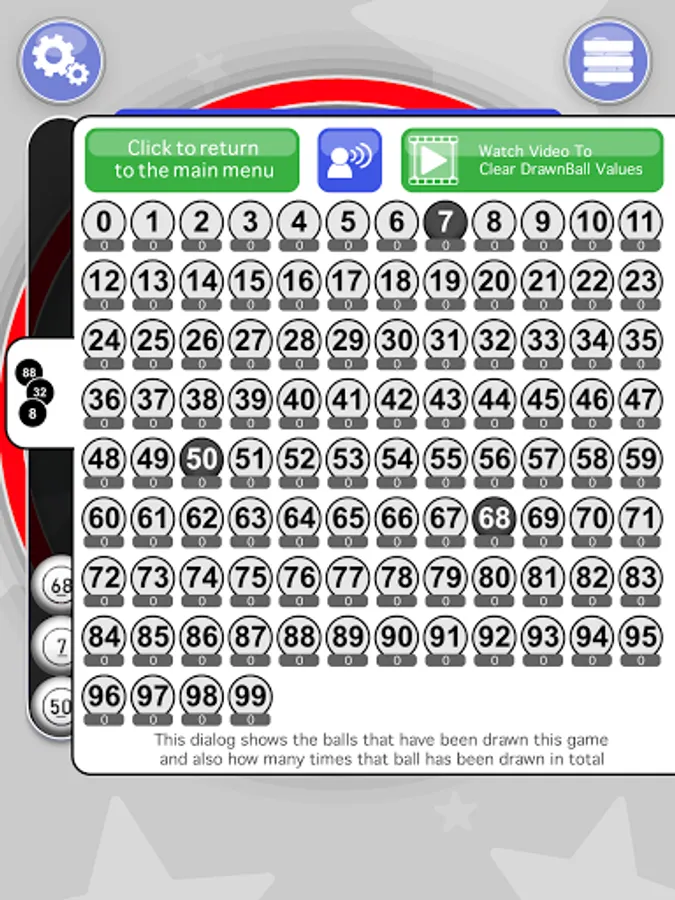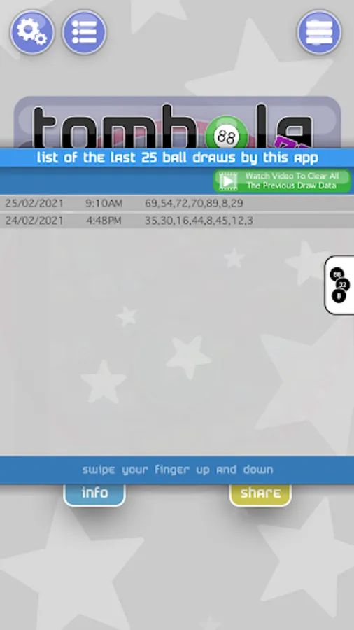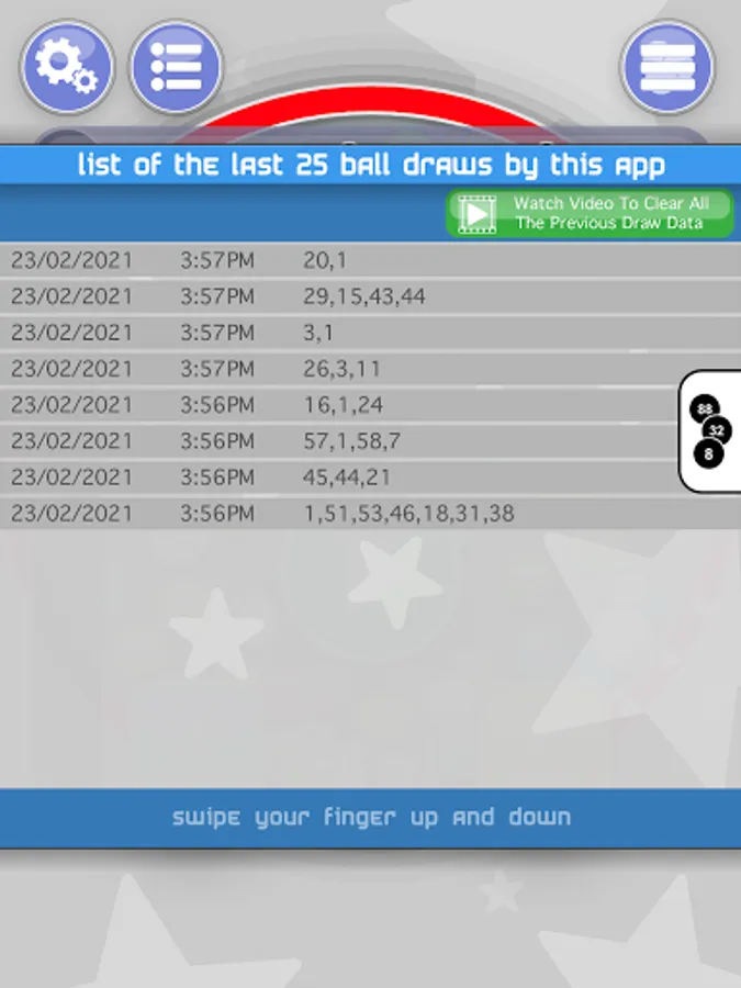 It will also display the last 25 ball draws the app has done, as well as the currently drawn balls and how often that ball has been drawn before.
