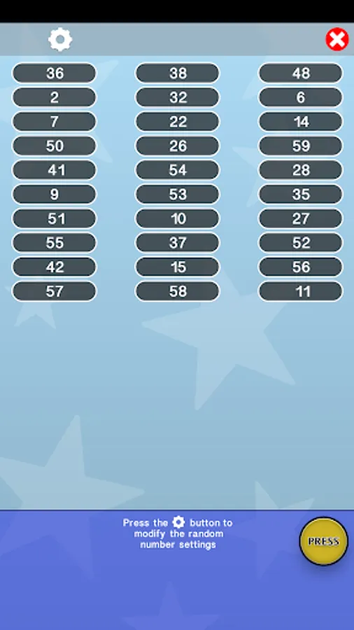 It shows a set of random numbers on the screen, you can configure 1-30 numbers, and