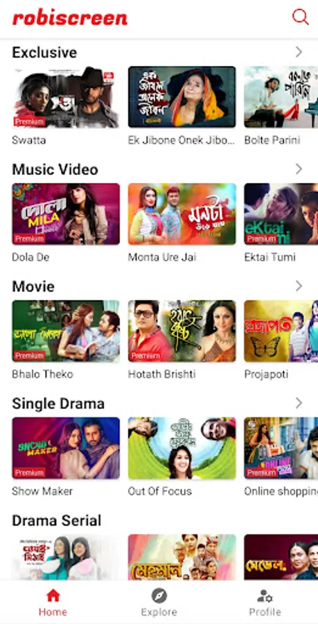 • Smart Searching Option : As Robi screen is a service with lots of contents, it has its smart searching option too. Just write the content’s name and find your content within a minute!
