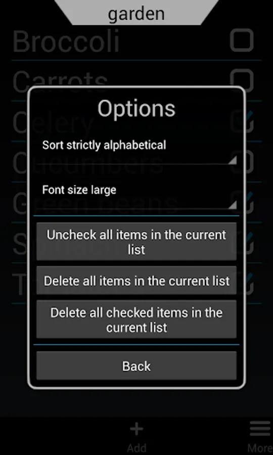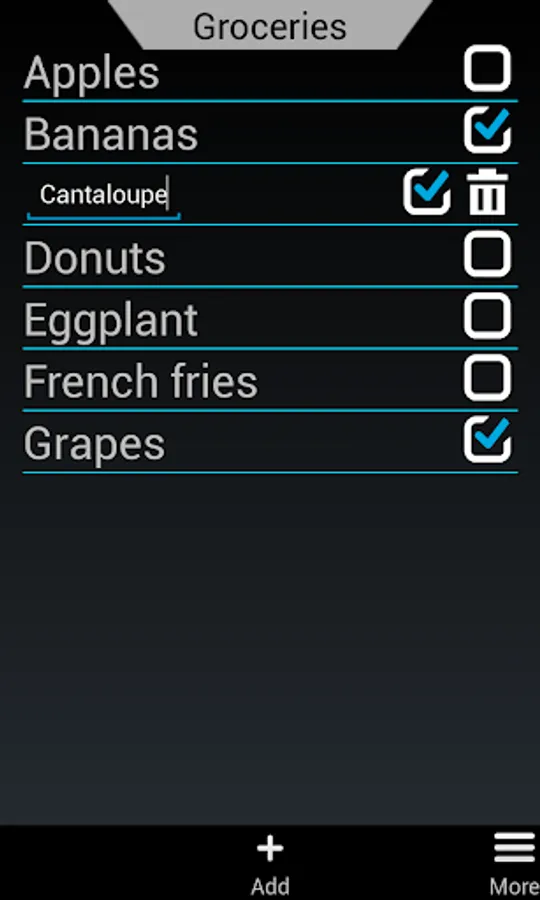 This app provides the ability to create a list of all the stuff that you need to do, or all the stuff that you need to buy. Touch and hold existing items in order to edit or delete them. Swipe down from the top in order to switch lists or add new ones.