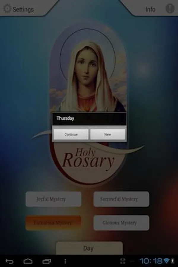 Rosary for Android is an inspiring way to reflect upon the Mysteries from the life of Jesus Christ. This app is perfect for catechism students who have trouble remembering all of their prayers, or for your own personal daily worship. With all of the Rosary prayers from the official Vatican website inside, and the easy to use controls, you can see every day with colorful prayer chains formed to your liking. Adjust the font size to accommodate your visual preference.