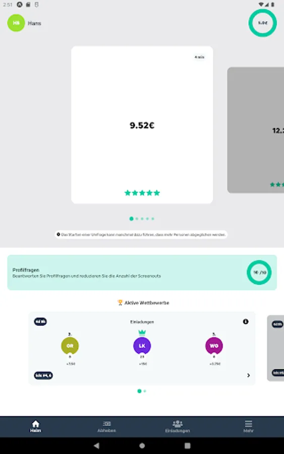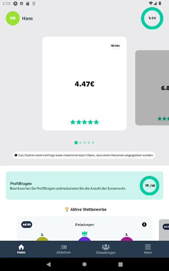 That depends on your demographics, as survey builders need different people for different surveys. Download DeutschePanel and find out for yourself. Turn on in-app notifications to never miss a poll, or open the app when you have some free time to see what polls are available.