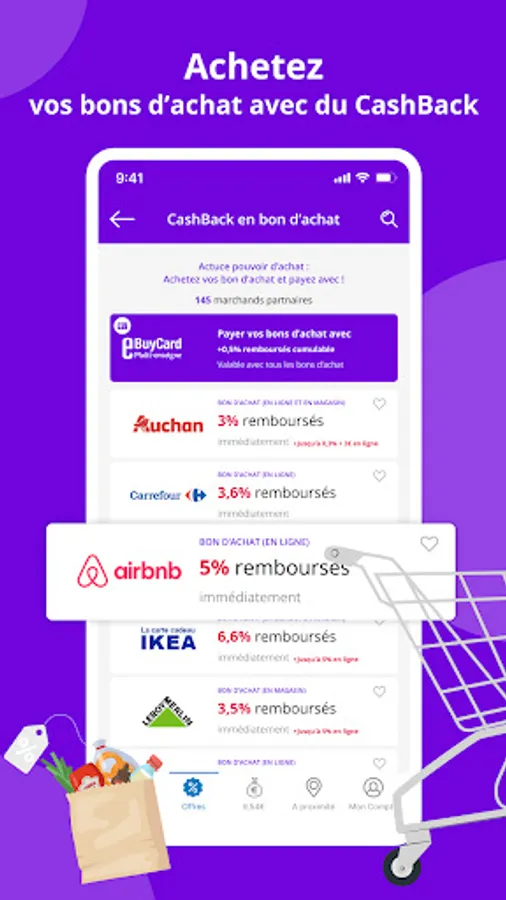 - Be alerted to promotions and good deals offered by your favorite merchants (Increase in CashBack, unbeatable promo codes, exclusive reductions, etc.)
