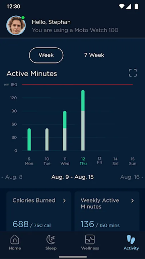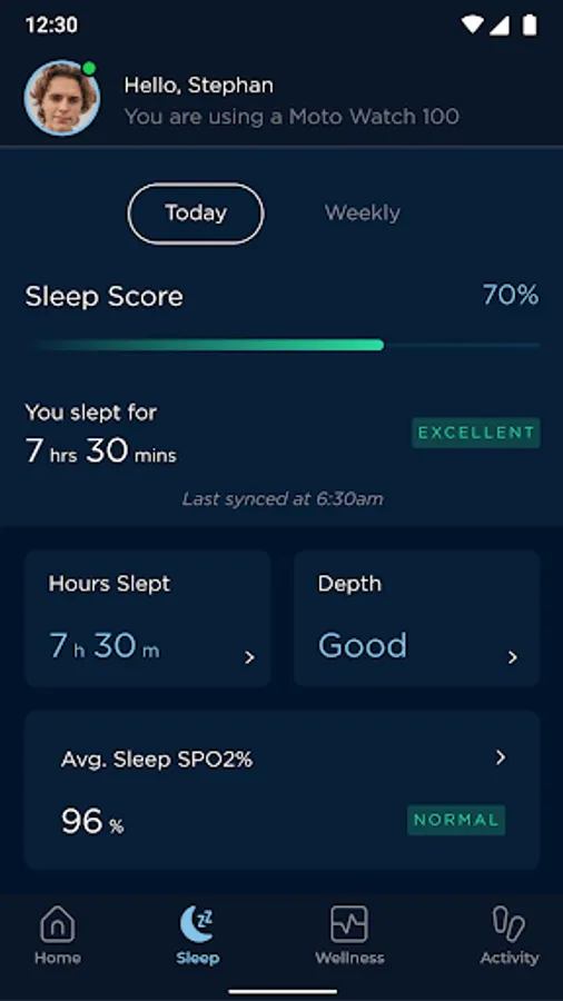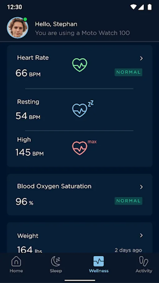 Be a better you: Get detailed stats, goals, and biometric data so you can track all areas of your wellbeing within the Moto Watch app.