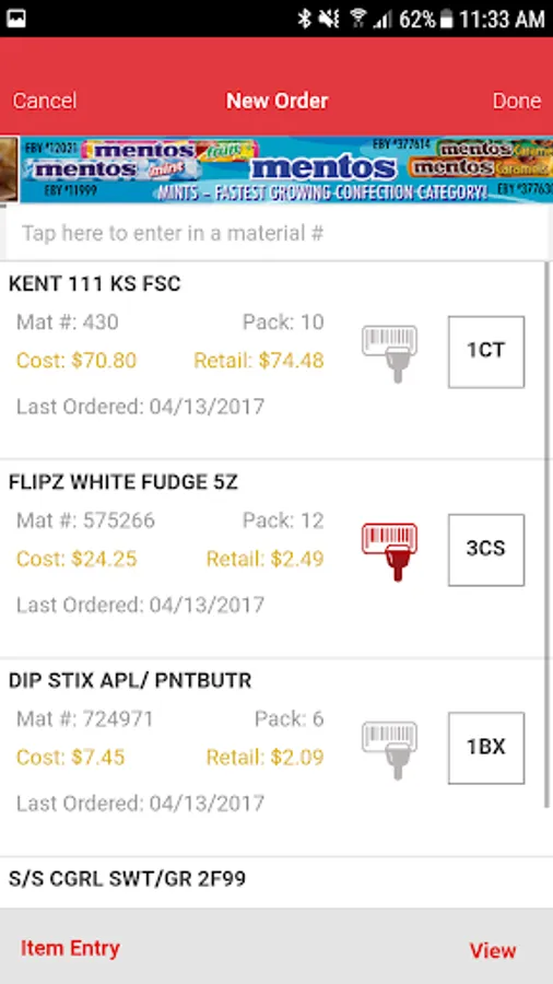 • Add items by scanning UPC’s or shelf labels via a Bluetooth scanner
