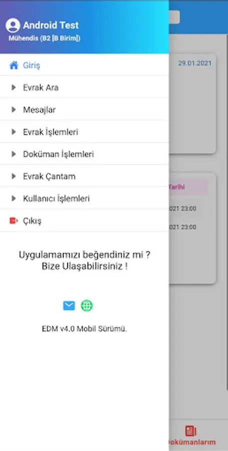 With the mobile application, by connecting to the central 3+ EDMS solution, document creation, document signing (with mobile signature and e-signature), document transfer, work flow transactions and document reading, approval and publishing can be done.