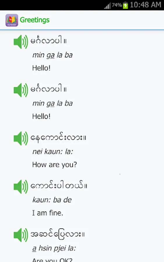 This application will introduce to you to be able to quickly pick up the basic Burmese language.