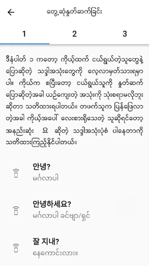 After leaning the alphabet components, writing style, phonetic, suffix words then learn spoken Korean sentences with which you can use in everyday lives.