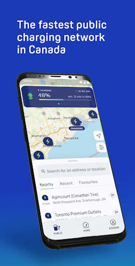 ● Charge in as little as 30 minutes on the fastest public charging network in Canada. The Electrify Canada app lets you find a charging station nearby, charge your EV, and manage your charging session.