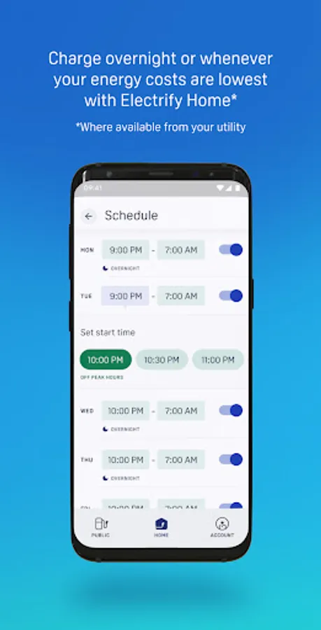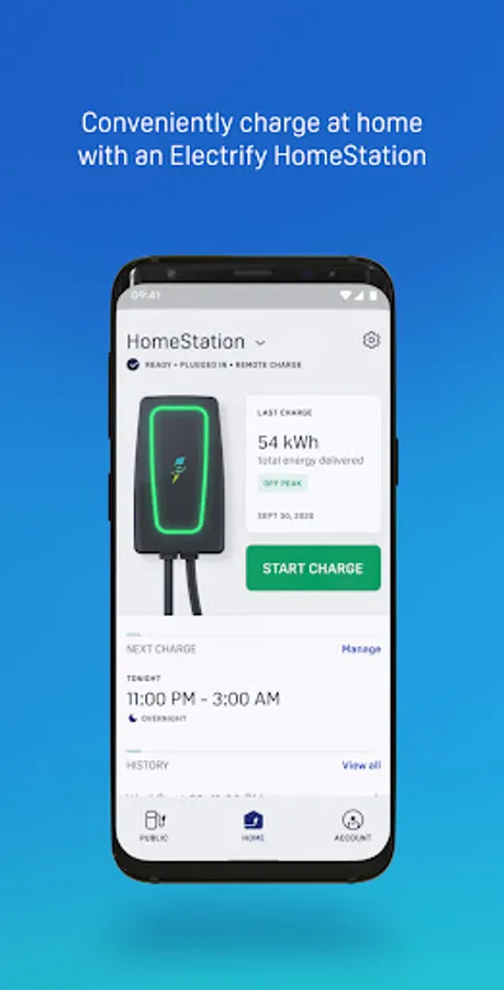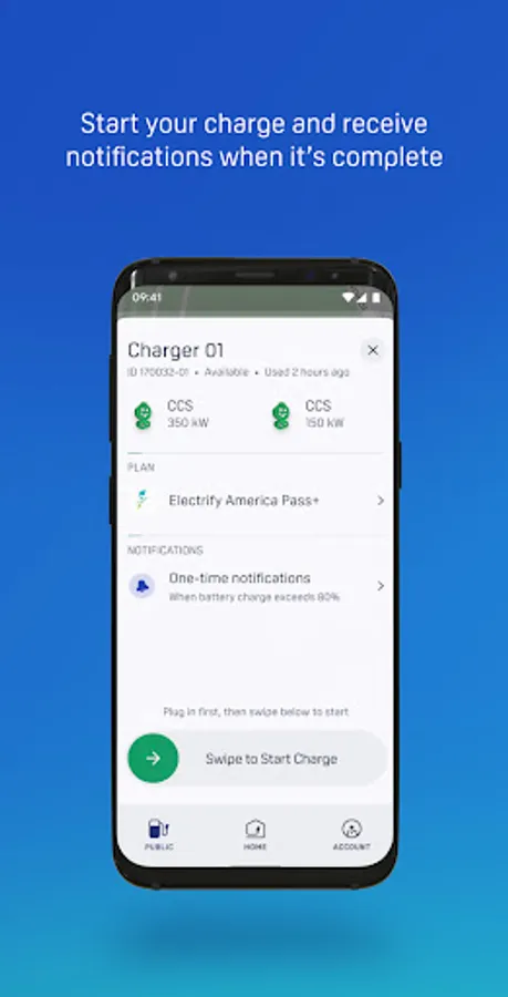 Your companion for easy charging, at home and on the go! Use the Electrify America app to schedule your charge at home, find a public charging station, and more.