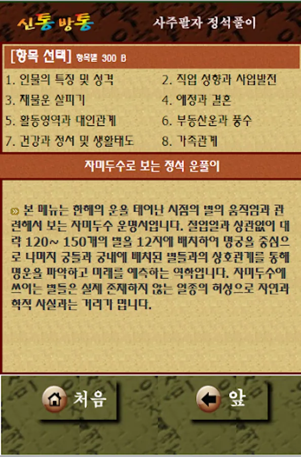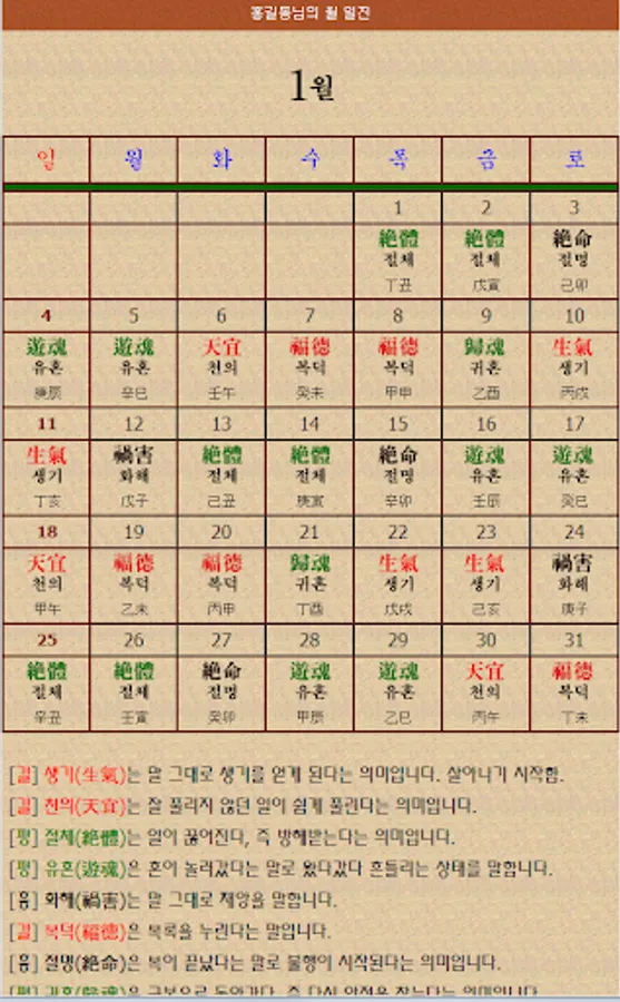 - Based on personal information, it provides four weeks, today's horoscope, and interpretation of the number of jamidu.