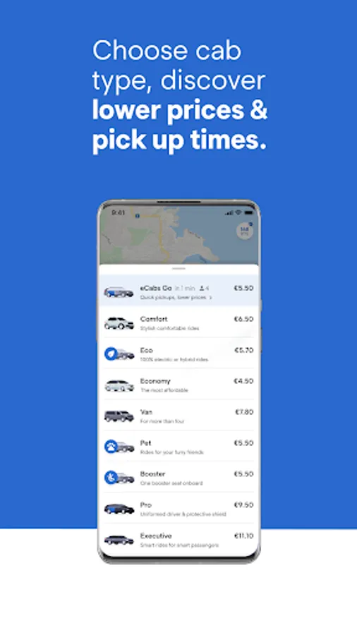 Book your rides with a few taps on eCabs App: