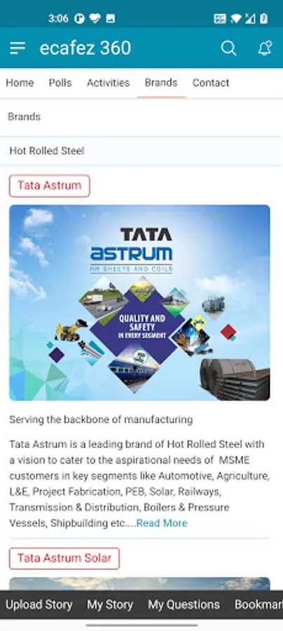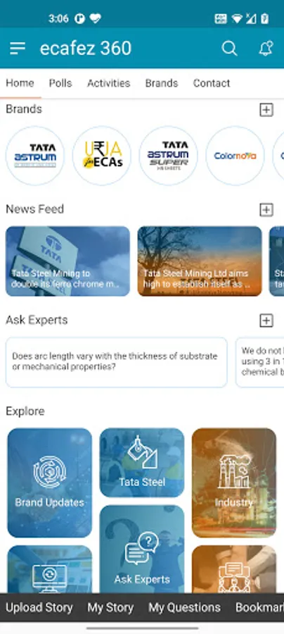 Ecafez 360 is a Tata Steel App Get your latest update related Tata Steel news, Brand promotion of ECA brands, Best practices and Mastercraft stories for customers, ECA Distributor Parivaar details and updates and Customer Connect Activities details. Upload your own story and publish it to all Distribution Channel.