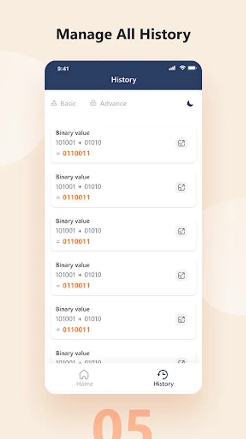 5. In advance mode, it converts decimal or other numbers to binary before applying any operation.