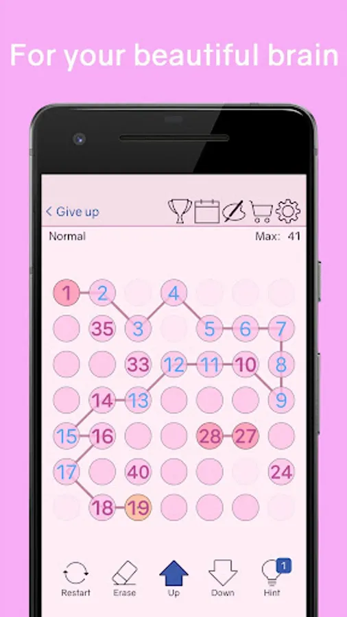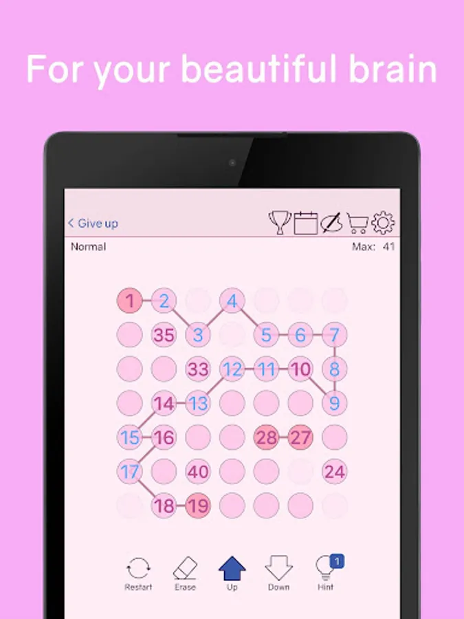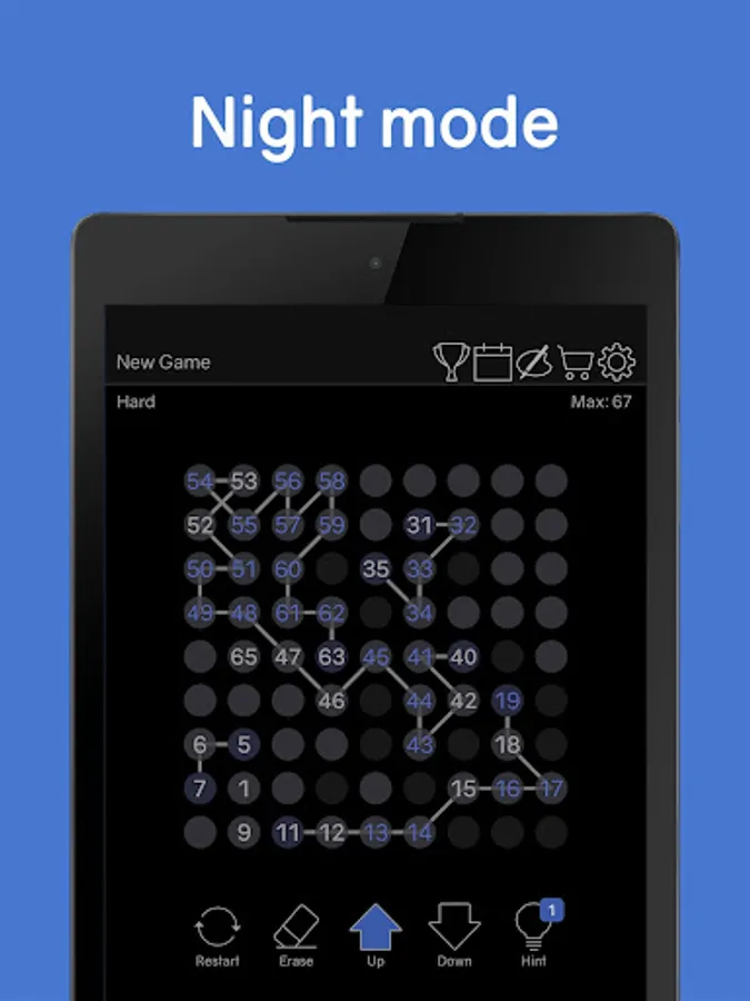 There is no time limit in this number logic puzzle game, so don't rush. If you get stuck while solving a number puzzle, think slowly and carefully. If you get stuck while trying to connect numbers in ascending order, try in descending order to solve the number puzzle. Don't forget that you can connect numbers not only horizontally, vertically, but also diagonally. Use diagonal connections to solve the number puzzle. If it seems to be completely wrong, one way is to boldly use the restart function to connect new numbers.