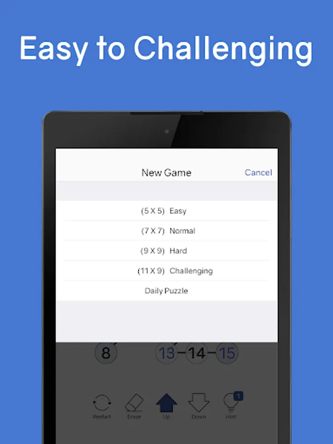 ✔ Endless puzzles. Over 50,000 number puzzles in various difficulty levels including 5x5, 7x7, 9x9, 11x9, 12x10, all for free.
