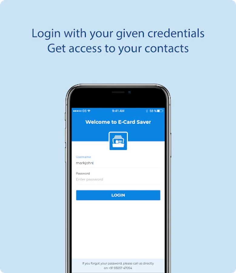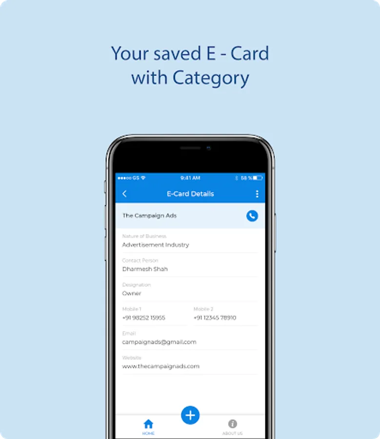 Add all your Detail of business cards in the app "E-Card Saver", just add detail of business card.