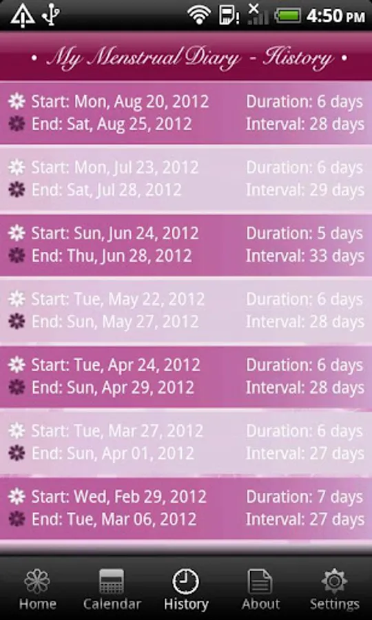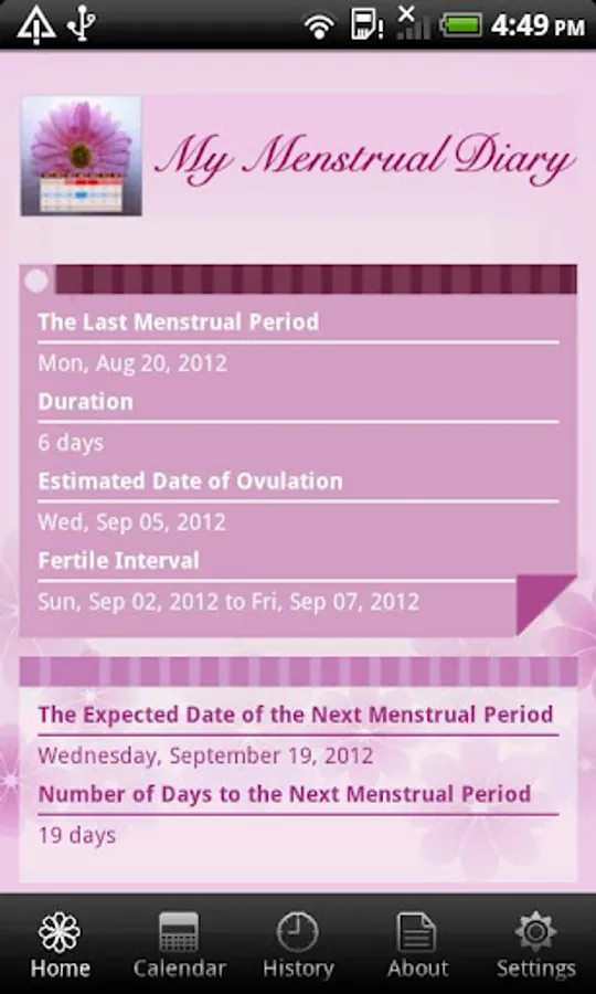 My Menstrual Diary is a very useful app. to monitor your periods. It provides valuable information. However, it is not a substitute for professional medical advice.
