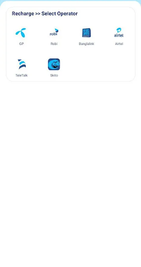 এই অ্যাপটি বাংলাদেশের সমস্ত মোবাইল অপারেটরদের দ্বারা অফার করা উপলব্ধ মিনিট এবং বান্ডেল প্যাকেজগুলিও প্রস্তাব করে৷