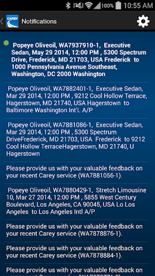 * Receive notifications regarding changes to your reservations, trip status, and flight delays