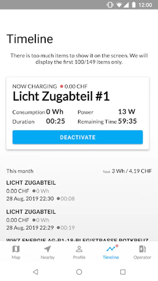 ▸ View the history of your previous charge sessions, including costs of the charge session, location details and amount of volume charged.