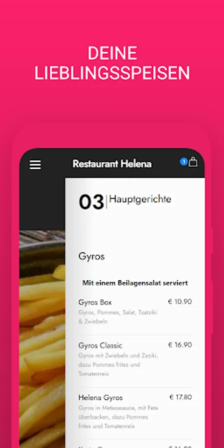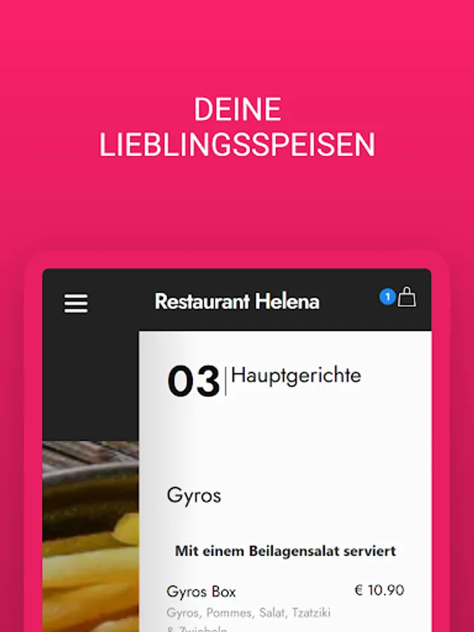 Order delicious Greek and Mediterranean dishes from your Helena restaurant in Braunschweig. With our app you can see current offers at any time and you don't have to wait long for your meal.