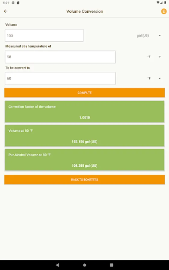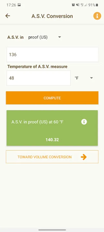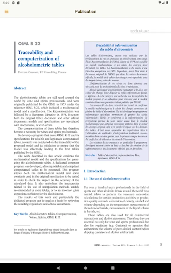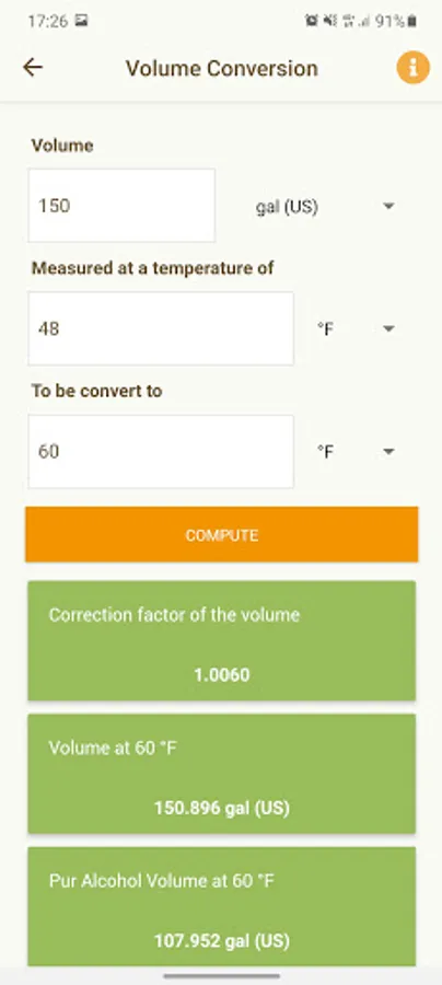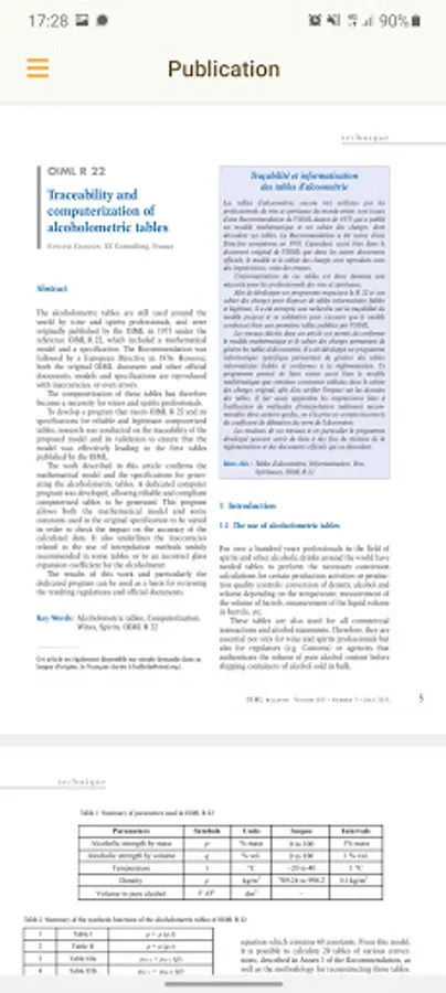 Alcohol and volume conversions as a function of temperature follow the International Legal Metrology Recommendation (OIML) R22 of 1975.