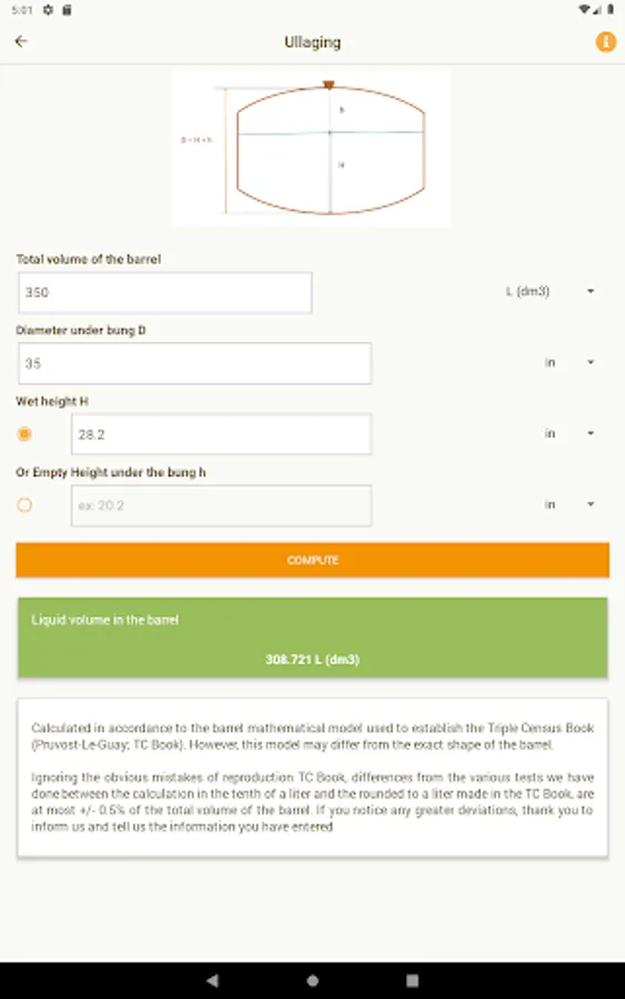 Calculations of volume in a barrel are based on the mathematical model used in the Triple Census Book of Mr PRUVOST-LE-GUAY.