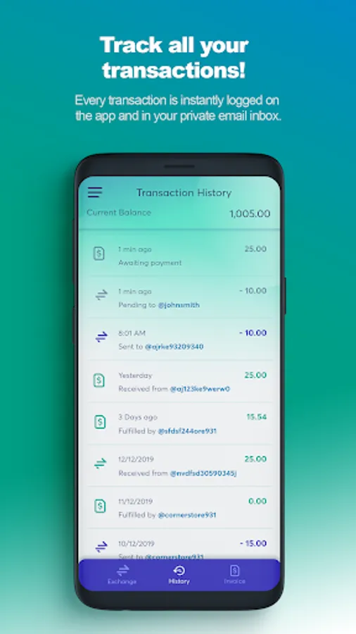 Securely built using blockchain technology, every DXCD transaction is logged in the app and in confidential email.