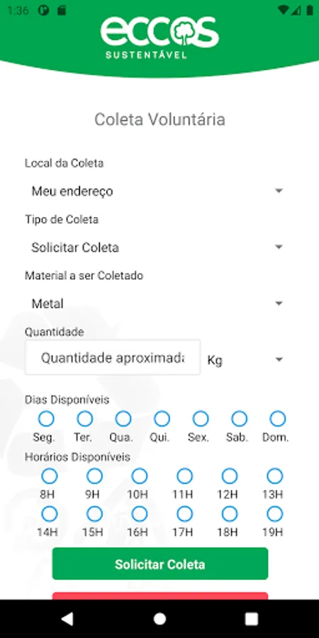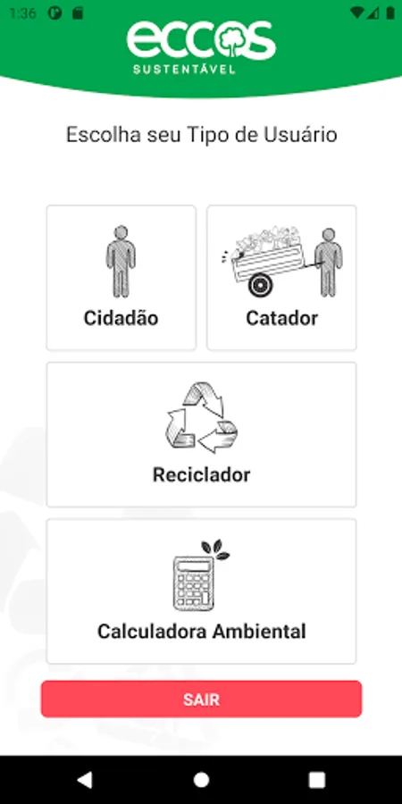 In the Eccos Sustentável App, the Citizen will be able to know the location and what types of recyclables are accepted in recycling agencies;