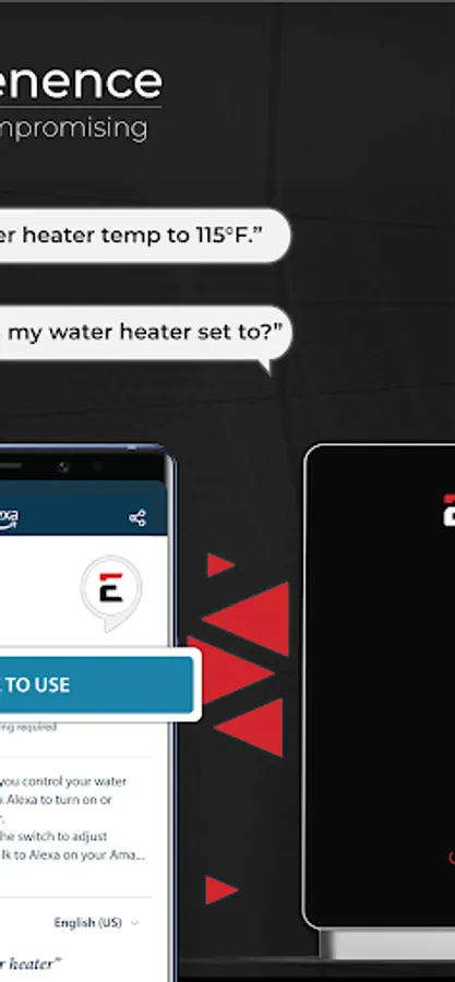 Once connected with a compatible smart device, you will be able to use voice commands to adjust your water heaters. A broad range of commands can be used to control water temperature, check heater status and schedule usage timers. *