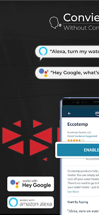 See the Eccotemp SMARTHOME devices in your home all in one place. View your whole home water heater and point of use water heaters conveniently in the app. The Eccotemp app allows your SMARTHOME water heaters to be voice controlled using a compatible smart device.
